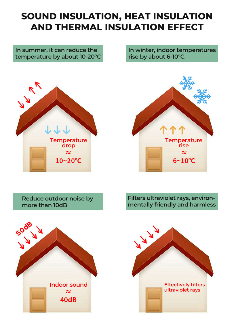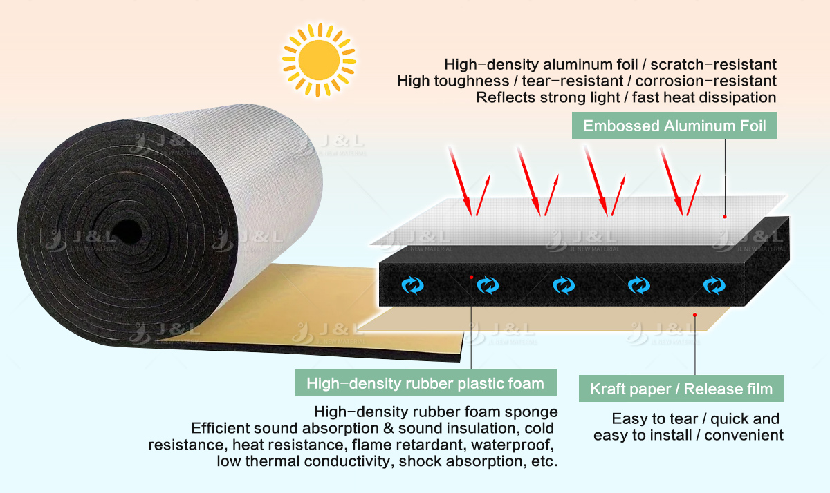 Imported Explosion-Proof Aluminum Foil: The surface is made of reinforced aluminum foil, which is waterproof, moisture-proof, and anti-aging, effectively reflecting sunlight’s ultraviolet rays for a long time.